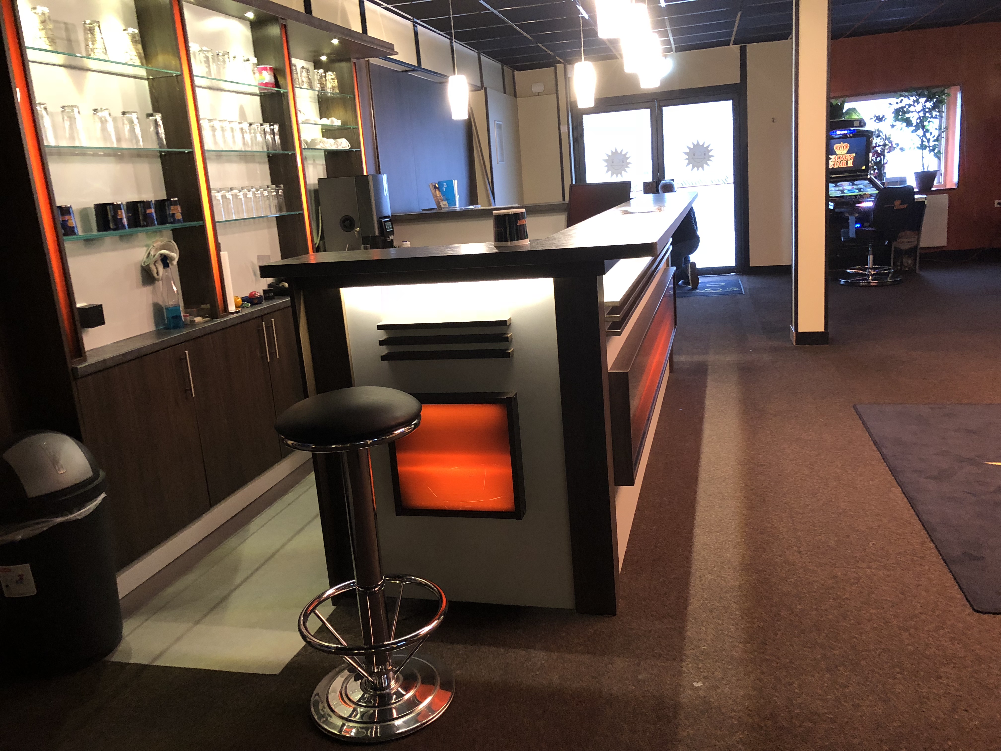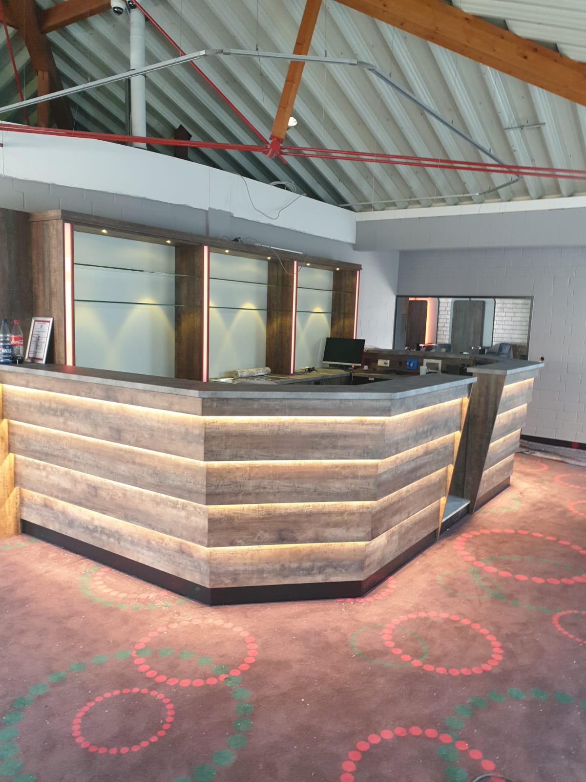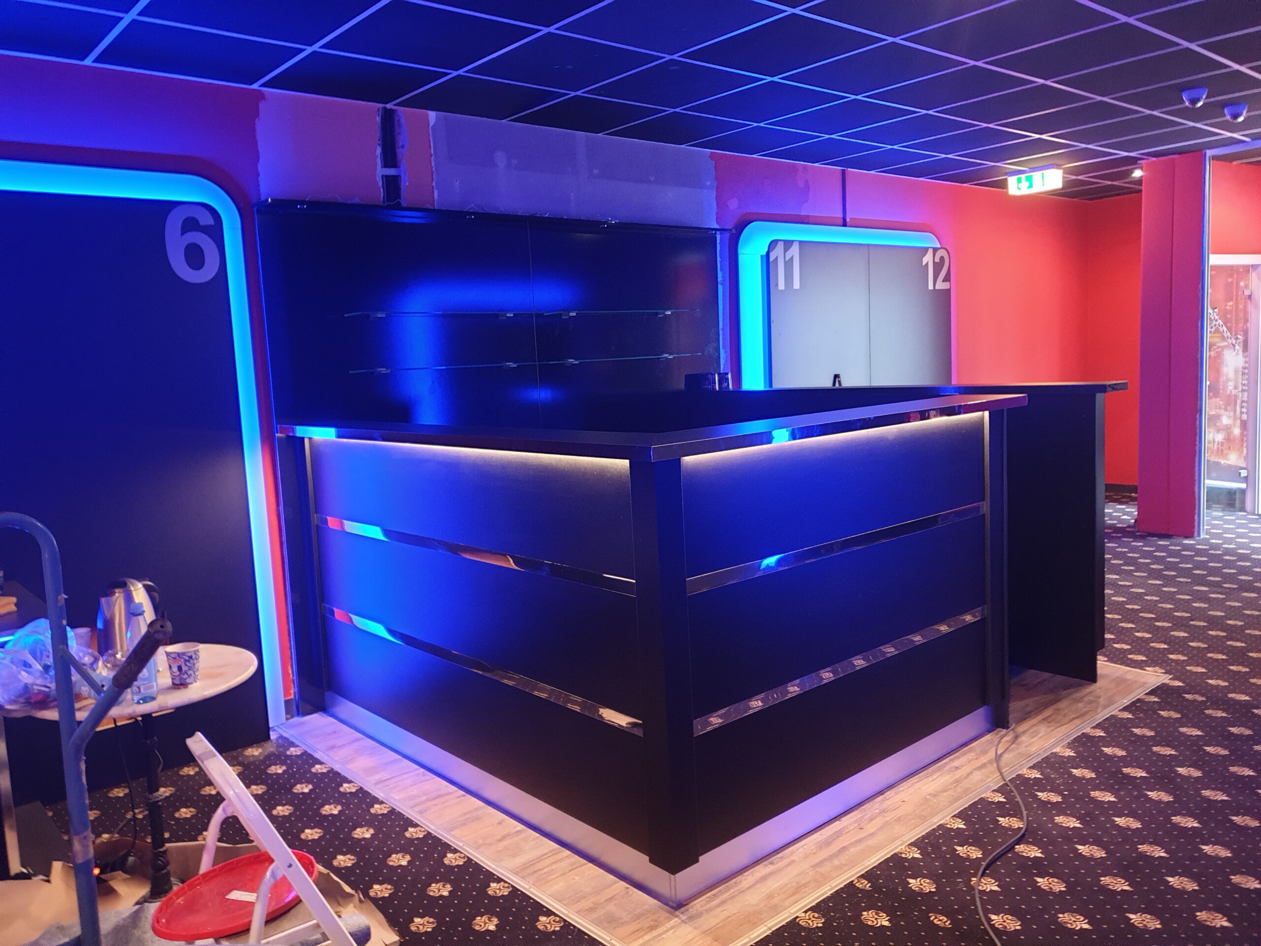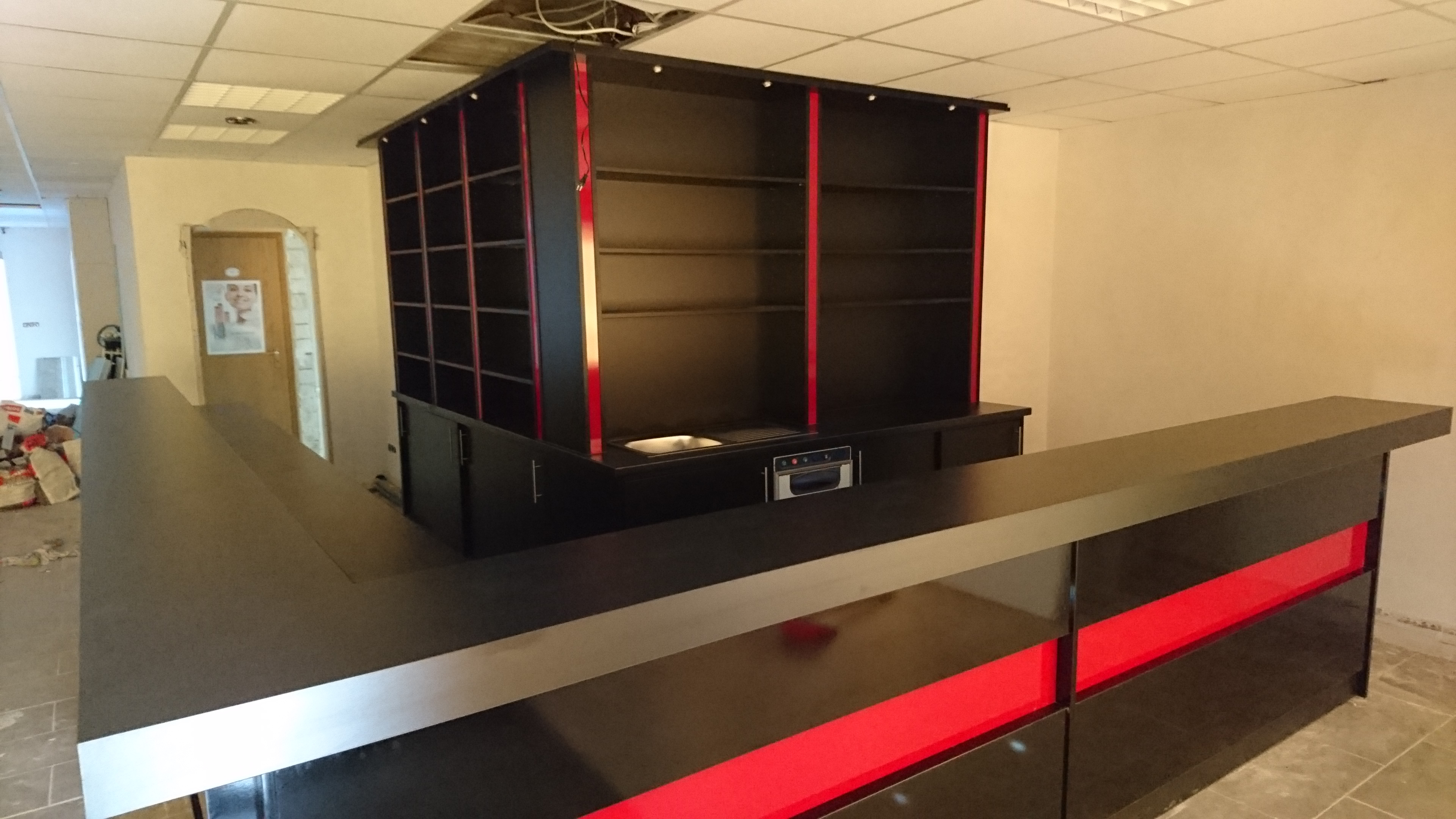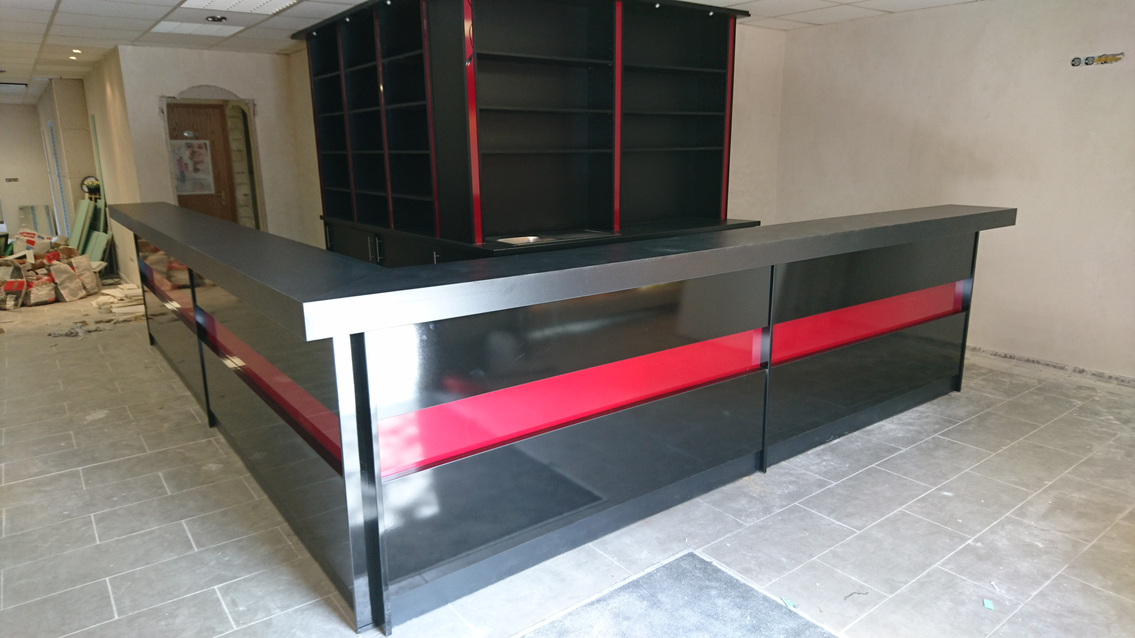 - Tresen mit Rundung und hinterleuchteter Acrylglasfont