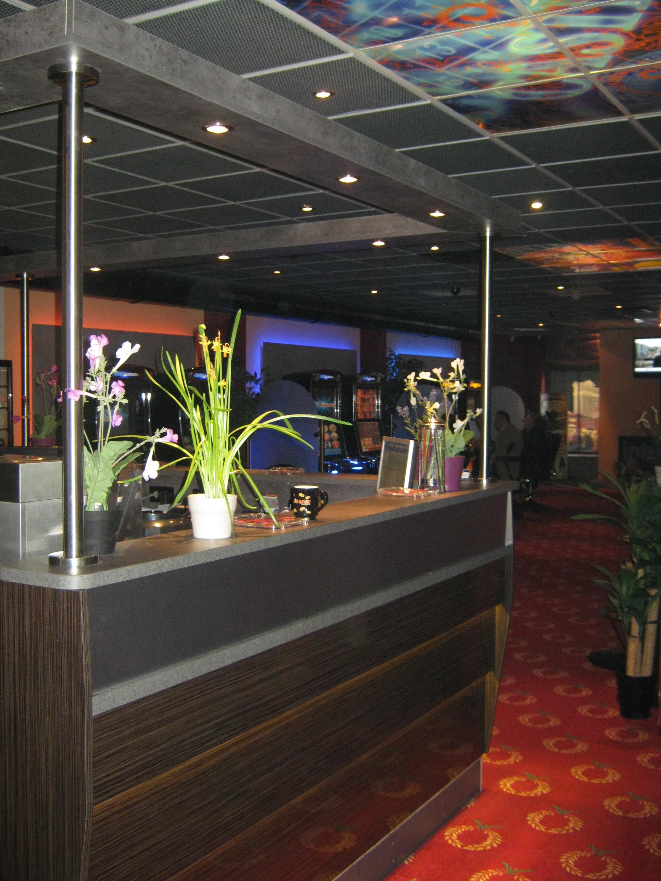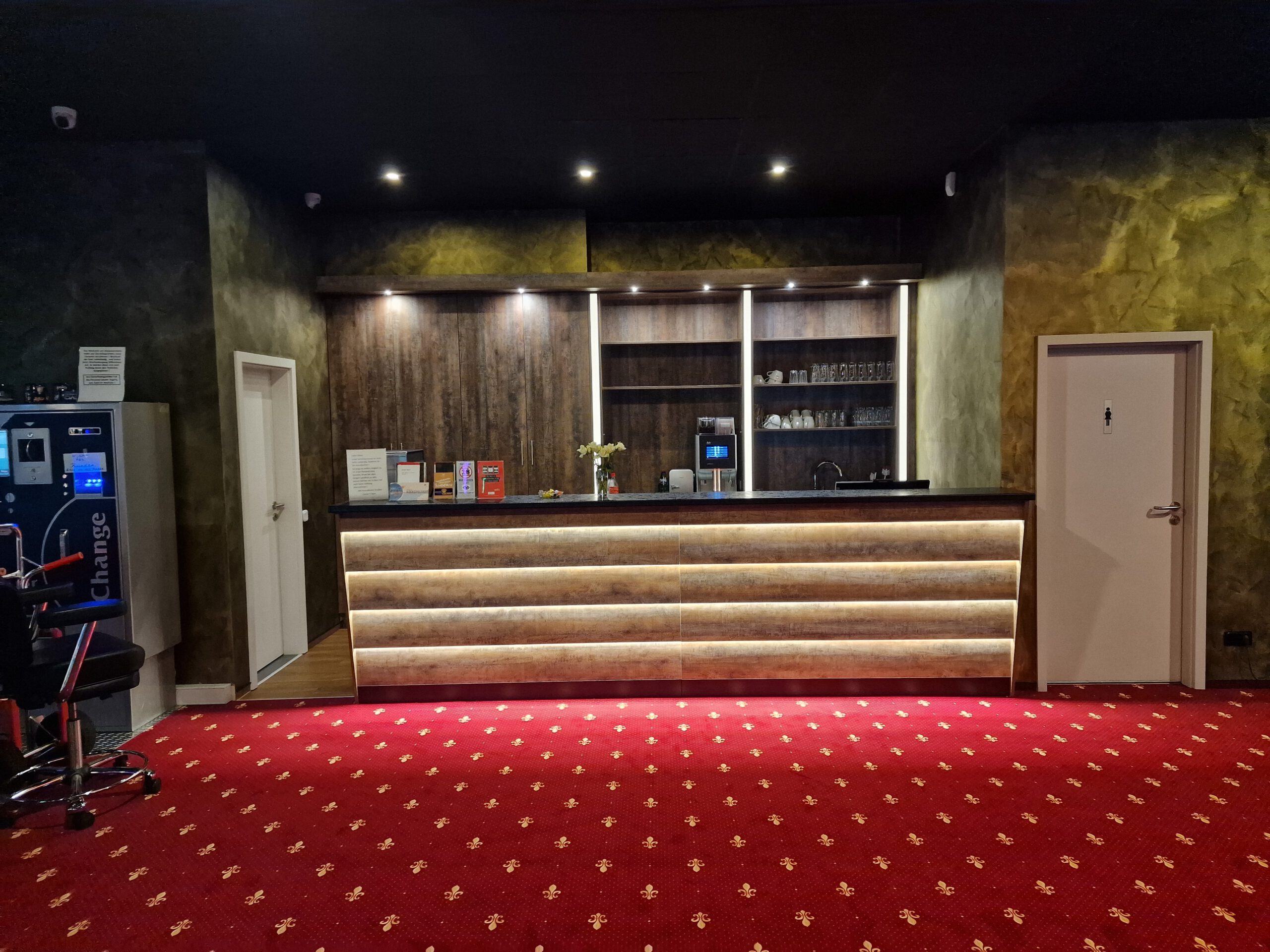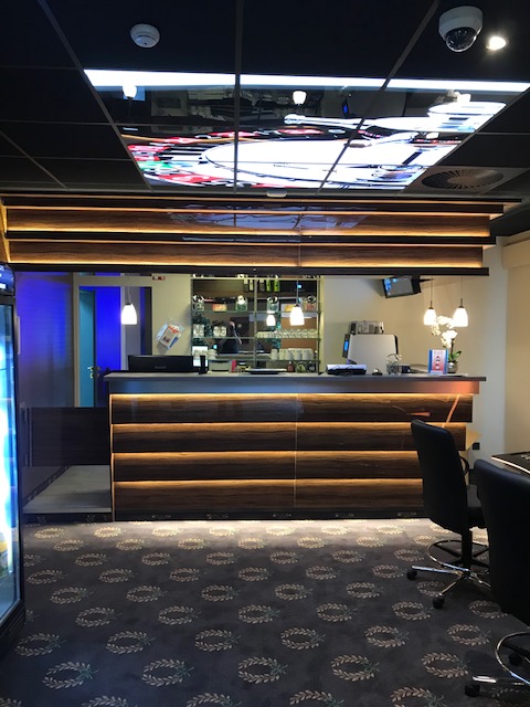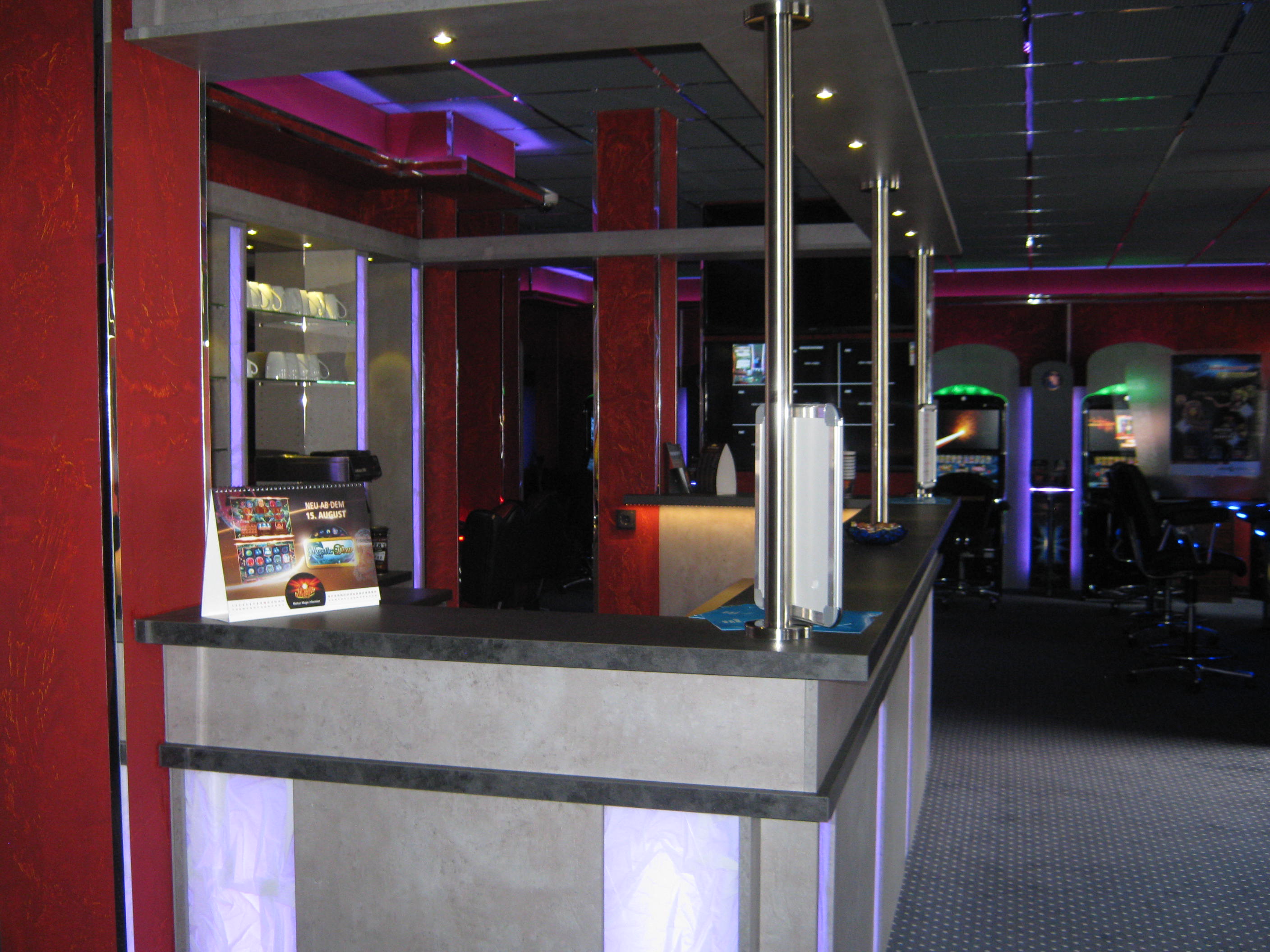 - Tresen, eckig, beleuchtete Felder und Deckenkranz