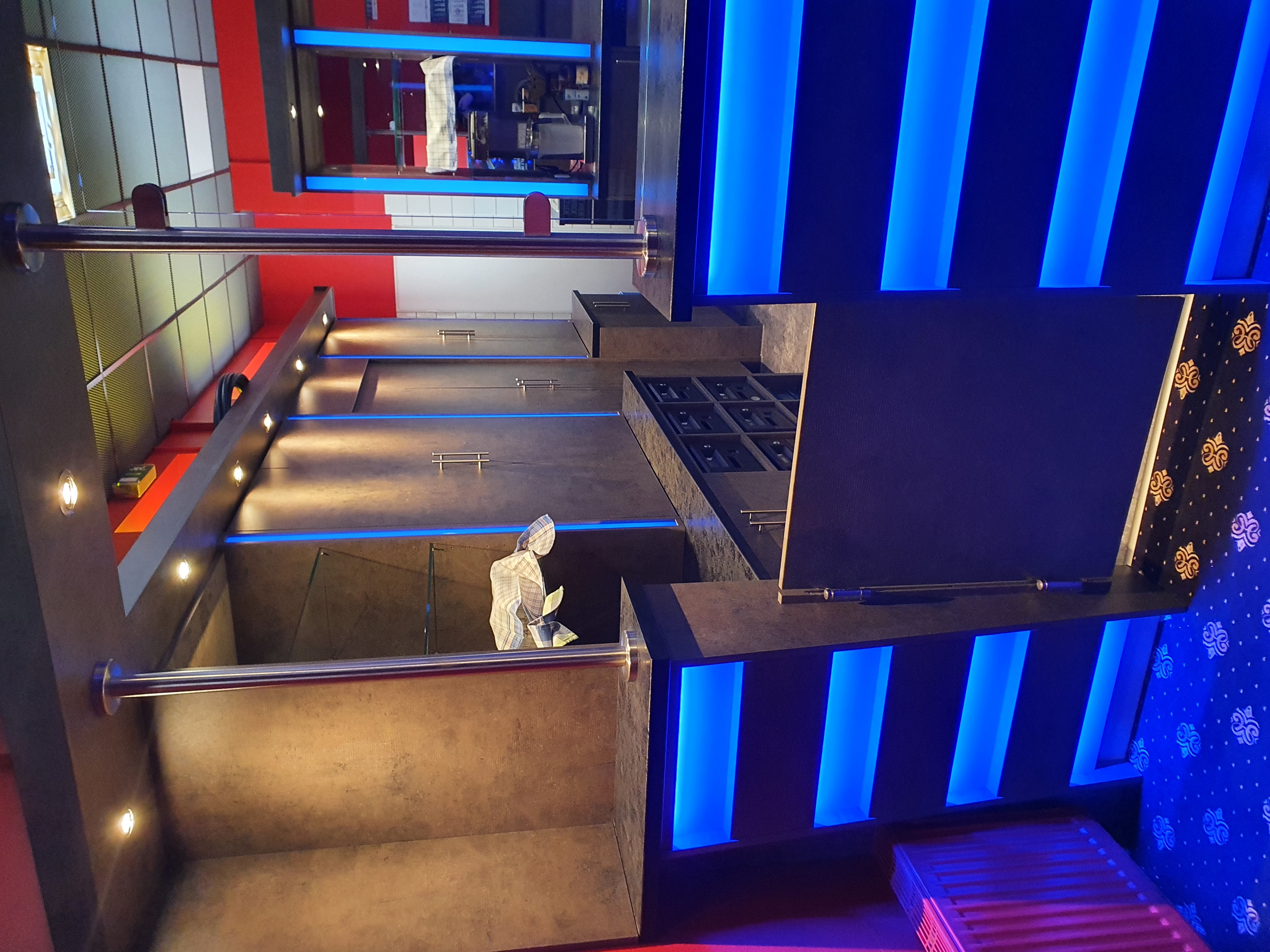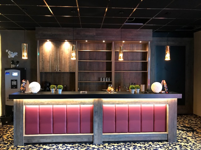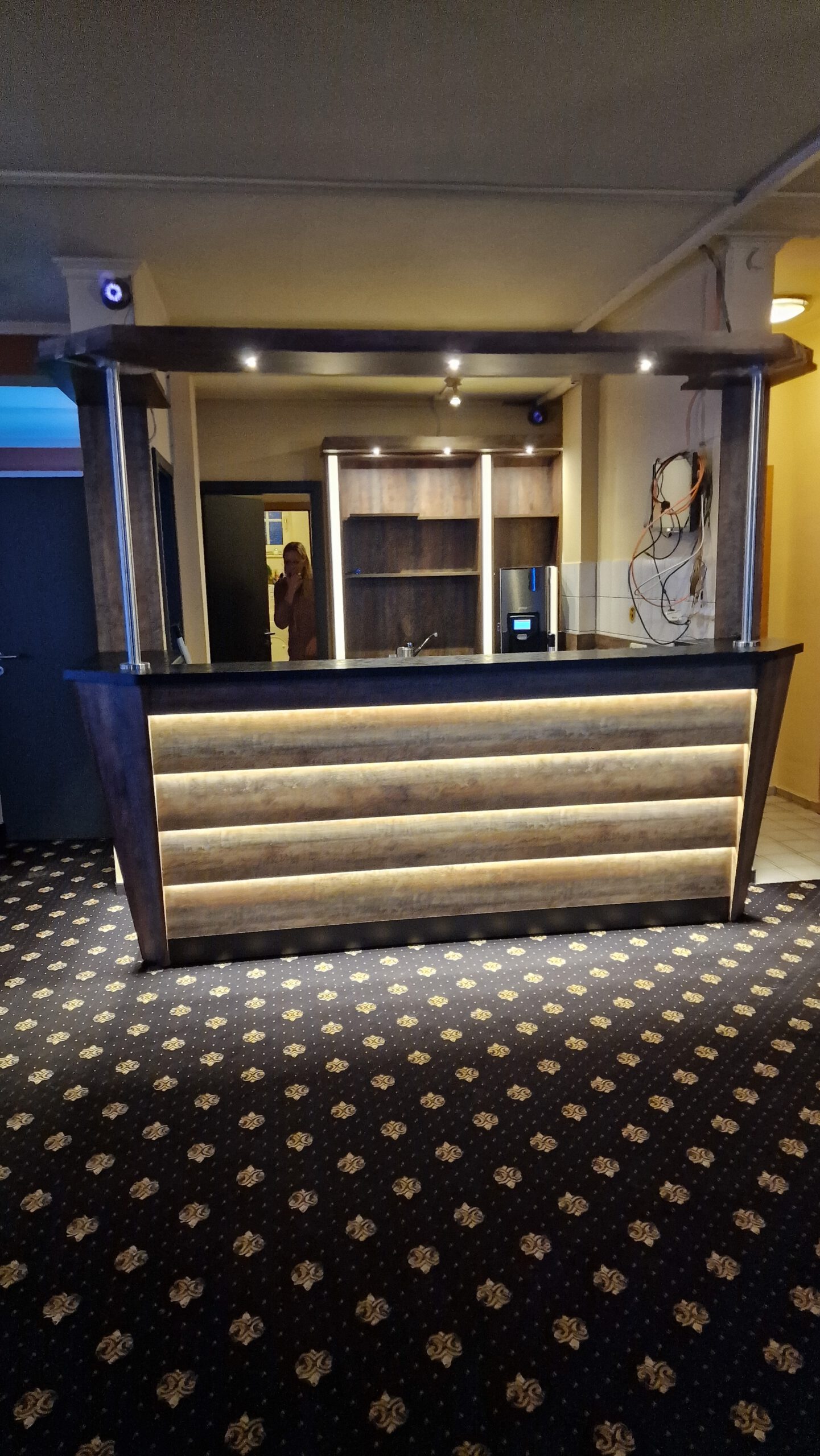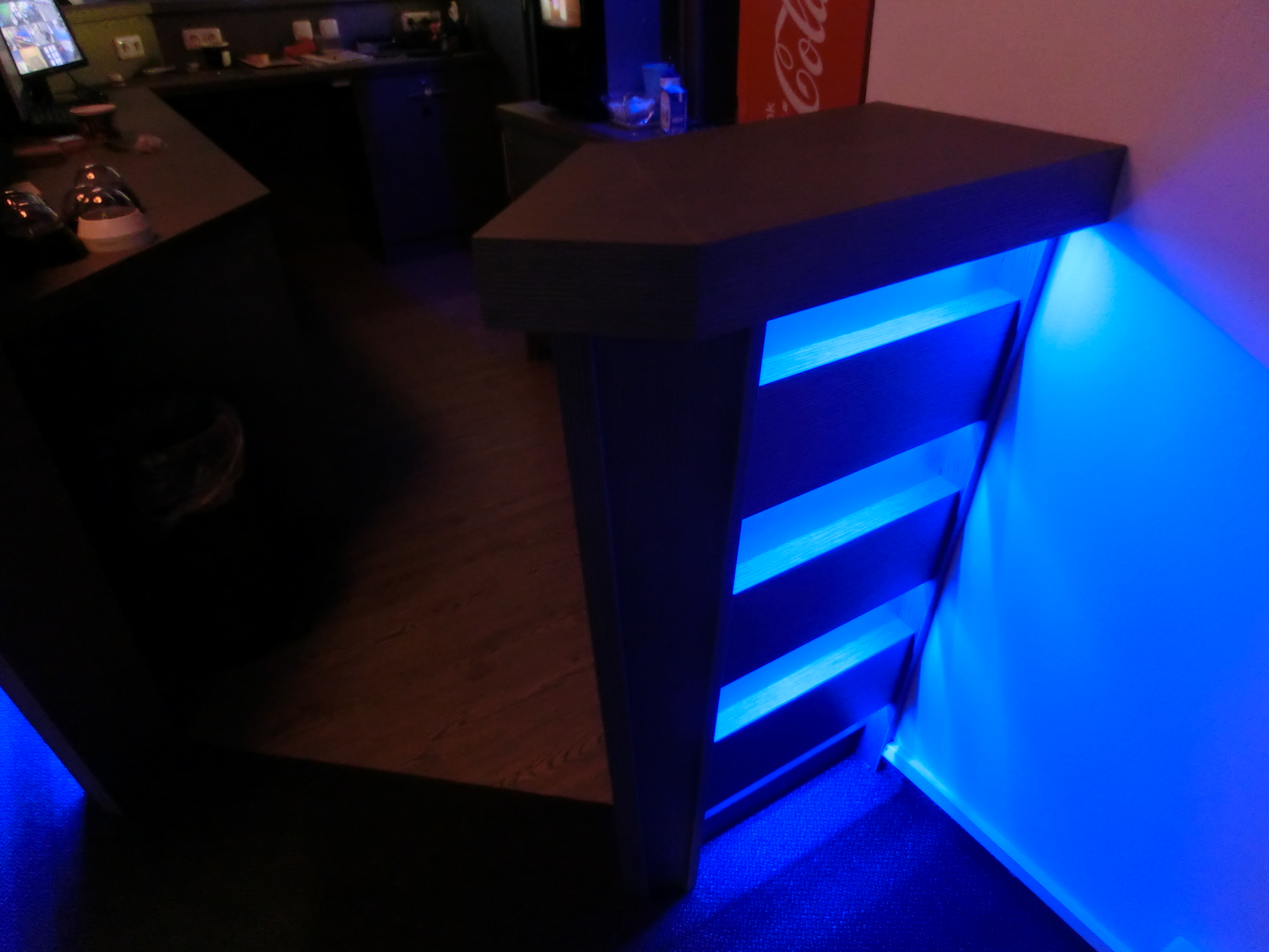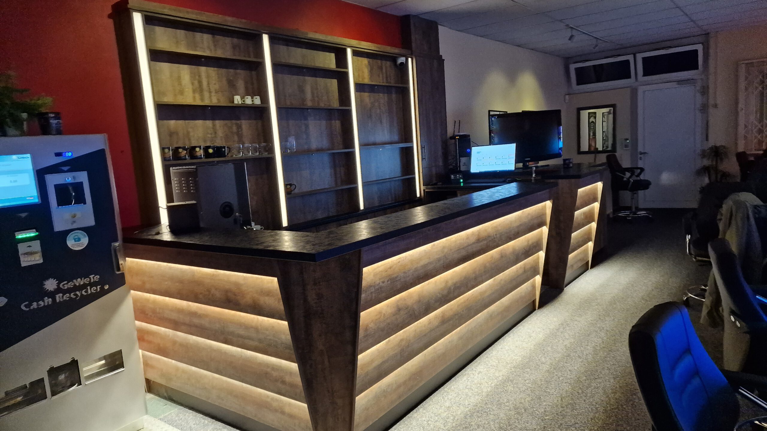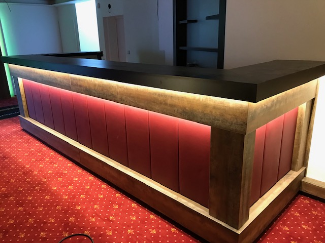 - Tresen, eckig in Stufenoptik, beleuchtet