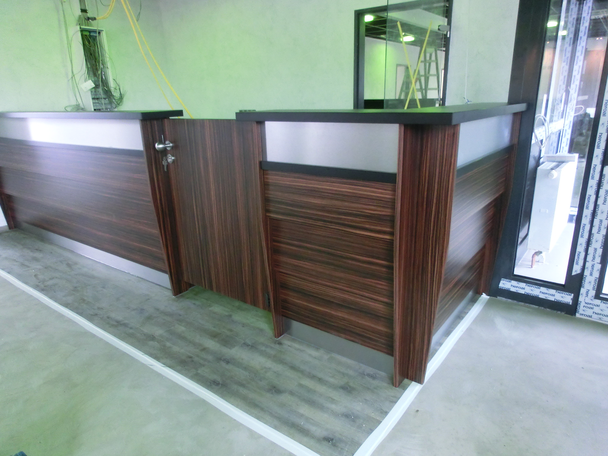 - Tresen mit abgesenktem Arbeitsplatz für die diskrete Erledigung von Büroarbeiten